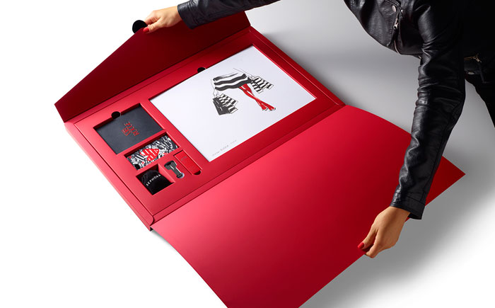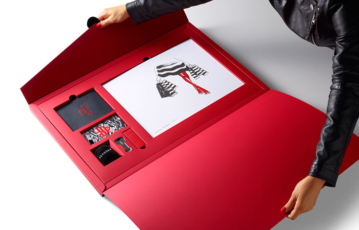 在前面的每一個圓滑,黑色,16“x24”信封,是收件人的姓名寫在紅色的書法。內部是大量柔軟的胭脂紅,每按試劑盒項目很好地存放在自定義威爾斯。包括一個VIB胭脂歡迎包,一個全尺寸的咬唇膏在自定義胭脂紅色燈罩,絲芙蘭品牌iPhone案件和耳機,和限量版編號的版畫藝術家路維薩·布菲特簽署。新聞稿本身被加載到一個光滑的黑色USB驅動器在一個關鍵的形狀。從絲芙蘭個人歡迎信放在上面。”